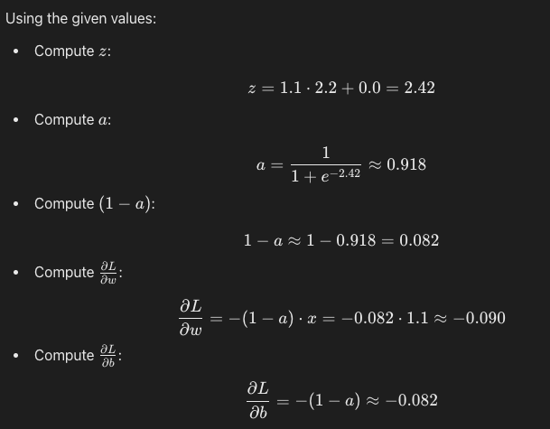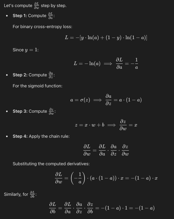 - Step 4: Compute the gradients of the loss with respect to each parameter using the chain rule.