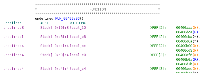 Ghidra is very useful to find the the offset for a buffer overflow thanks to the information about the position of the local variables.
