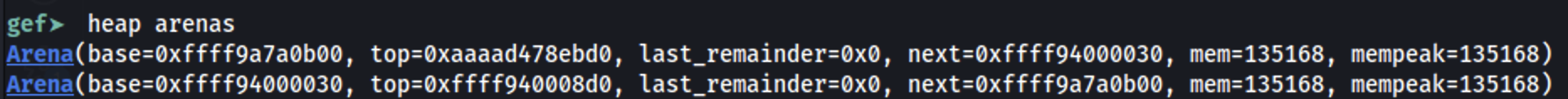 To address this, the ptmalloc2 heap allocator introduced "arenas," where each arena acts as a separate heap with its own data structures and mutex, allowing multiple threads to perform heap operations without interfering with each other, as long as they use different arenas.