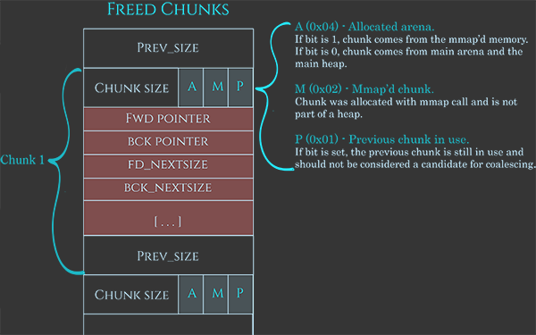 0x4: Non Main Arena - Specifies that the chunk was obtained from outside of the main arena