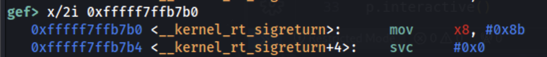 On modern distributions the sigreturn trampoline is still exported by the vDSO page but the exact offset may vary across kernel versions and build flags such as BTI (+branch-protection) or PAC. Automating its discovery prevents hard-coding offsets: