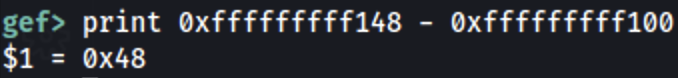 Then: 0xfffffffff148 - 0xfffffffff100 = 0x48 = 72