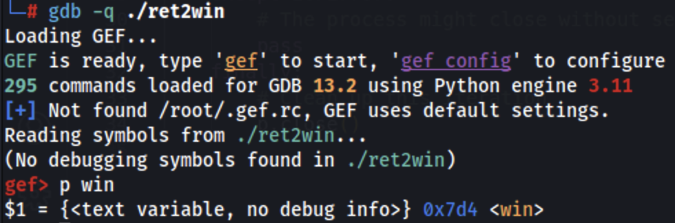 gdb -q ./ret2win