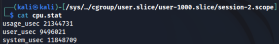 Monitoring CPU usage within a cgroup is possible through the cpu.stat file, displaying total CPU time consumed, helpful for tracking usage across a service's subprocesses: