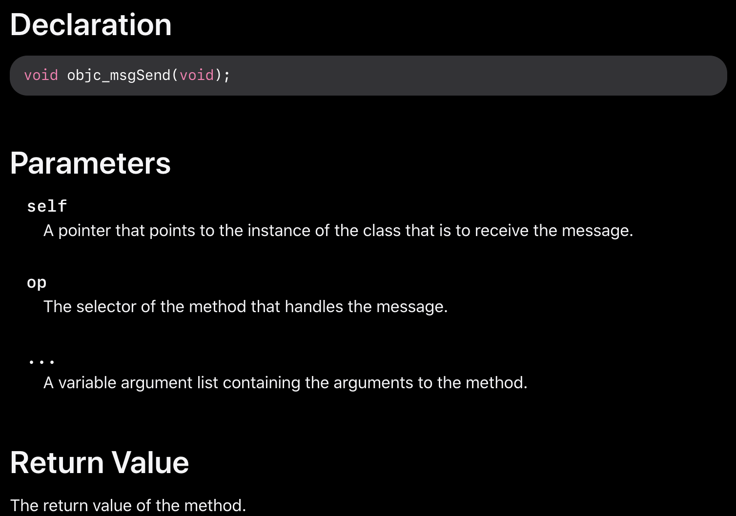 When a function is called in a binary that uses objective-C, the compiled code instead of calling that function, it will call objc_msgSend. Which will be calling the final function: