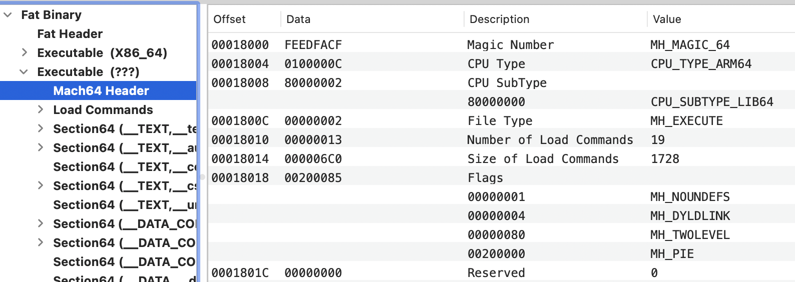 # Checking the mac header of a binary