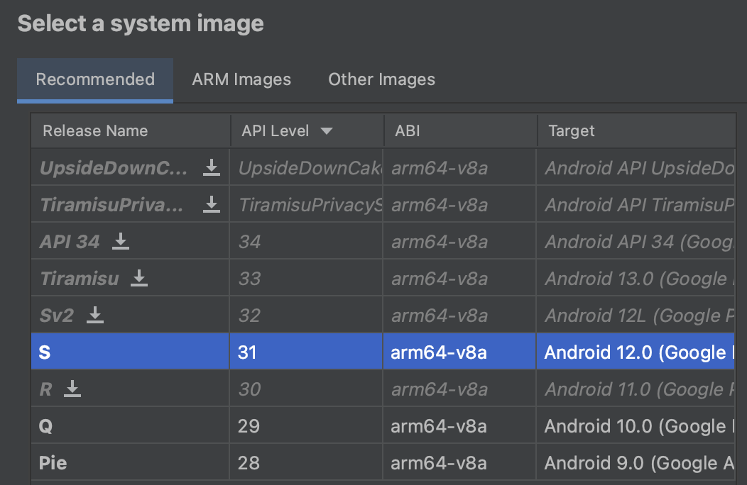 In the current view you are going to be able to select and download the Android image that the phone is going to run: