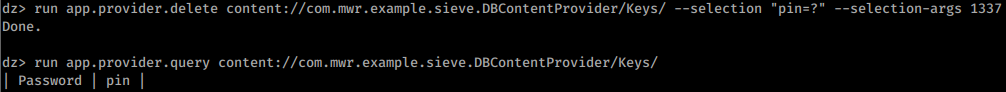 dz> run app.provider.query content://com.mwr.example.sieve.DBContentProvider/Passwords/ --vertical