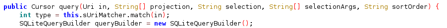 projection,selectionandsortOrderarguments (e.g. build queries withSQLiteQueryBuilder.setProjectionMap). - In