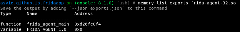 Lets checks what is frida exporting: