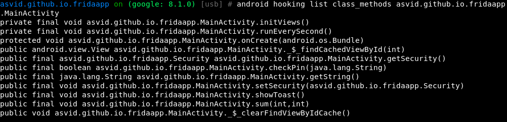android hooking list class_methods asvid.github.io.fridaapp.MainActivity