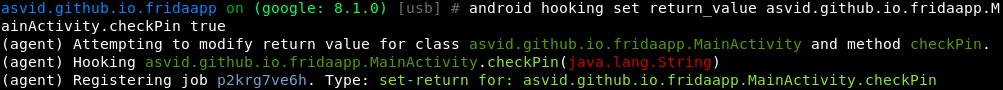 android hooking watch class asvid.github.io.fridaapp.MainActivity --dump-args --dump-return
