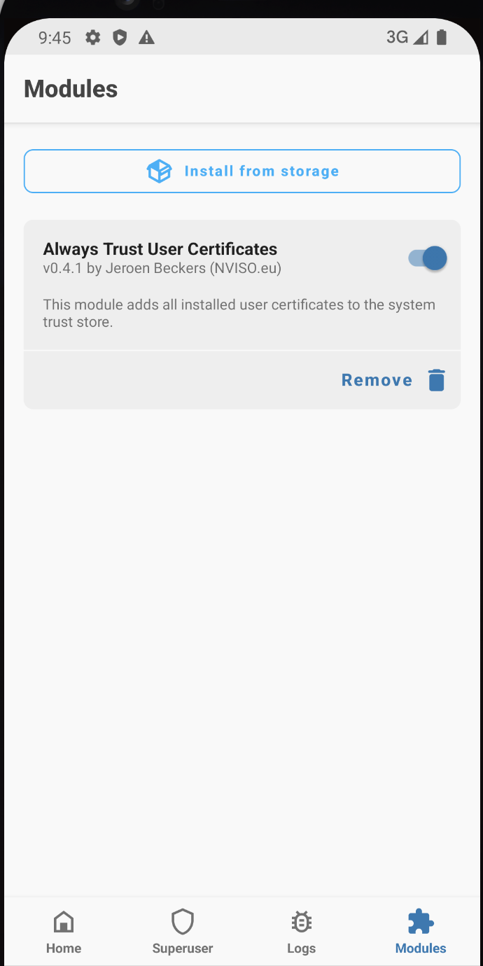 - Make it System trusted: Download the Magisc module MagiskTrustUserCerts (a .zip file), drag&drop it in the phone, go to the Magics app in the phone to the
