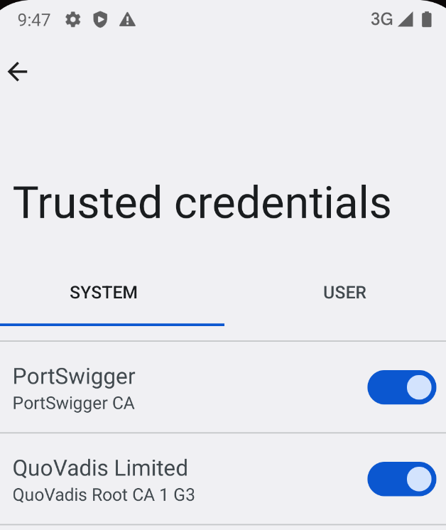 - Install a CA certificate: Just drag&drop the DER Burp certificate changing the extension to