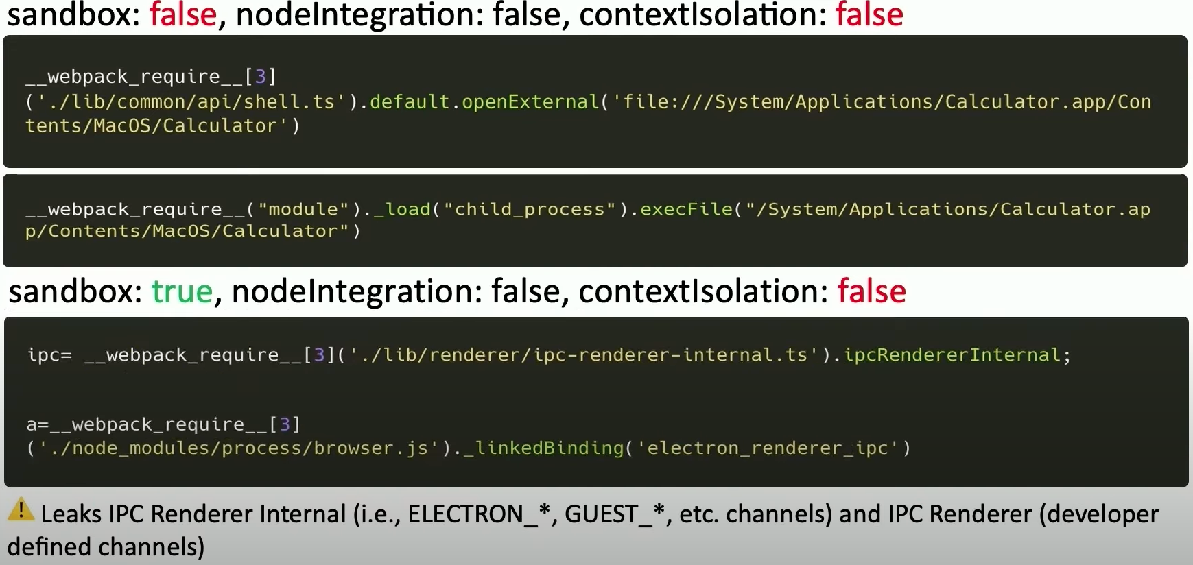 Example from https://speakerdeck.com/masatokinugawa/electron-abusing-the-lack-of-context-isolation-curecon-en?slide=41