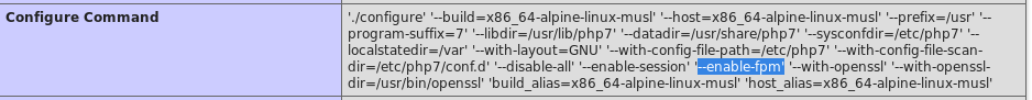 The PHP setting sue to be configured in the path /etc/php7/conf.d or similar.
