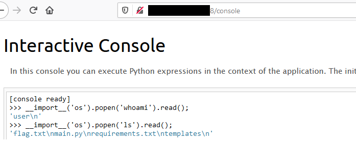 In some occasions the /console endpoint is going to be protected by a pin. If you have a file traversal vulnerability, you can leak all the necessary info to generate that pin.
