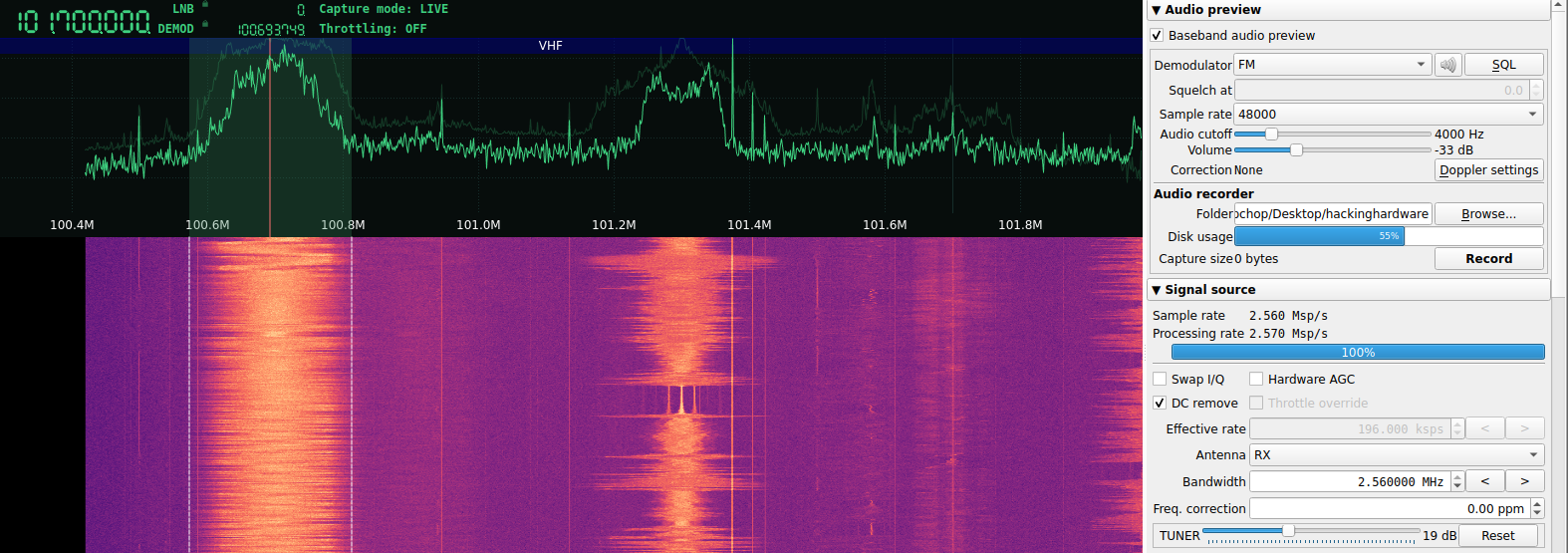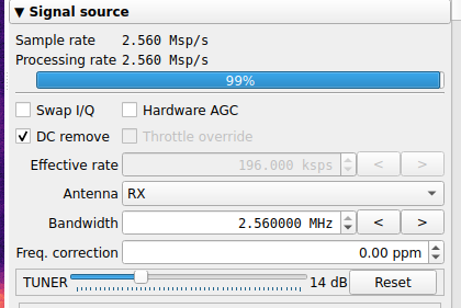 - The Tuner of SigDigger helps to capture better signals (but it can also degrade them). Ideally start with 0 and keep making it bigger until you find the noise introduce is bigger than the improvement of the signal you need).