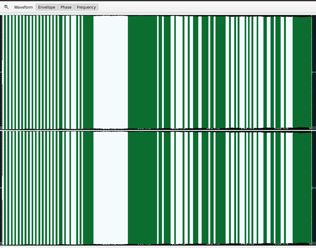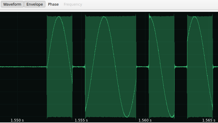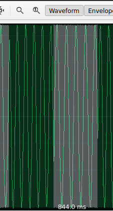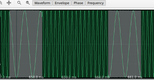 In the previous image you can observe pretty good that 2 frequencies are used but if you observe the waveform you might not be able to identify correctly the 2 different frequencies: