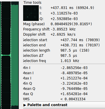 You can also indicate the number of symbols you are going to select and SigDigger will calculate the frequency of 1 symbol (the more symbols selected the better probably). In this scenario I selected 10 symbols and the "Selection freq" is 1.004 Khz: