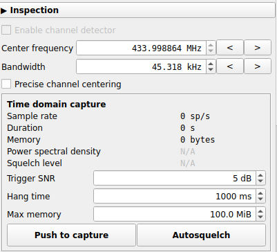 - Just to capture some time of a signal and analyze it just maintain the button "Push to capture" as long as you need.