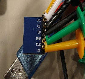 Connect the EEPROM memory with the CH341a Programmer and plug the device into the computer. Incase the device is not getting detected, try installing drivers into the computer. Also, make sure that the EEPROM is connected in proper orientation (usually, place the VCC Pin in reverse orientation to the USB connector) or else, the software would not be able to detect the chip. Refer to the diagram if required: