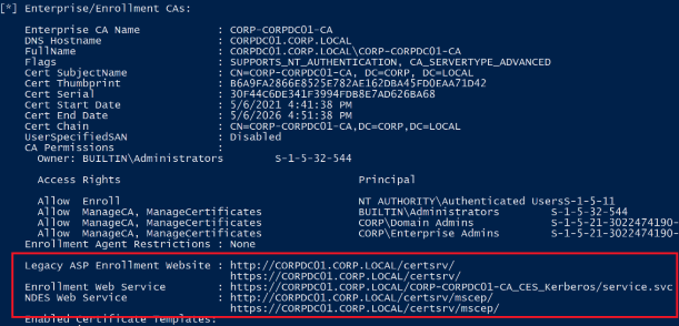 -target 'CA.CORP.LOCAL' -ca 'CORP-CA' \