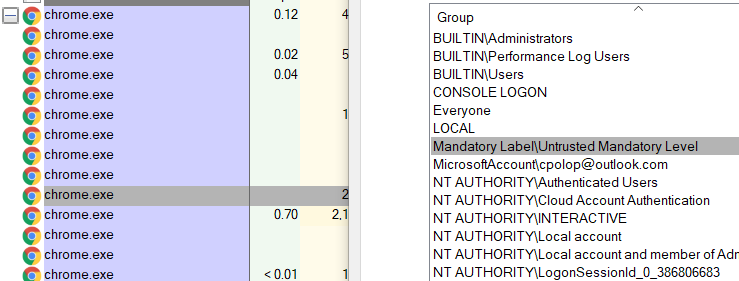 - Untrusted: This level is for processes with anonymous logins. Example: Chrome